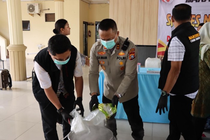 Barang bukti tersebut dimusnahkan dengan cara direbus dalam air mendidih, kemudian dicampur cairan pembersih lantai dan diaduk hingga larut. Cairan hasil pemusnahan selanjutnya dibuang di hadapan para saksi, termasuk tersangka, pejabat terkait, dan tamu undangan. Proses ini dilakukan secara terbuka untuk menjamin transparansi dan mencegah penyalahgunaan barang bukti.