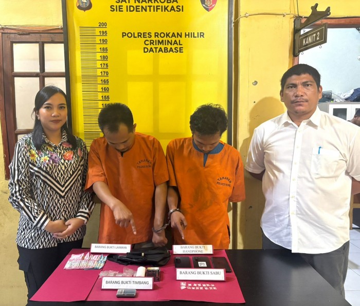Demikian diungkapkan Kapolres Rohil AKBP. Isa Imam Syahfoni SIK.MH melalui Kasat Narkoba Polres Rohil AKP. M. Sodikin SH. MSi, Rabu (22/10/2025). Diterangkannya, selain dua tersangka pihaknya juga turut mengamankan Barang Bukti ( BB ) narkotika jenis sabu - sabu dengan berat kotor 1.87 gram beserta BB lainnya.