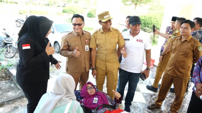 Posko donor darah dibuka di sisi kiri tribun Taman Budaya usai apel bersama yang dipimpin Wakil Bupati Rokan Hilir, Jhony Charles, BBA, MBA. Kegiatan ini diikuti oleh perangkat kepenghuluan, anggota Badan Permusyawaratan Kepenghuluan (BPKep), serta sejumlah peserta apel.