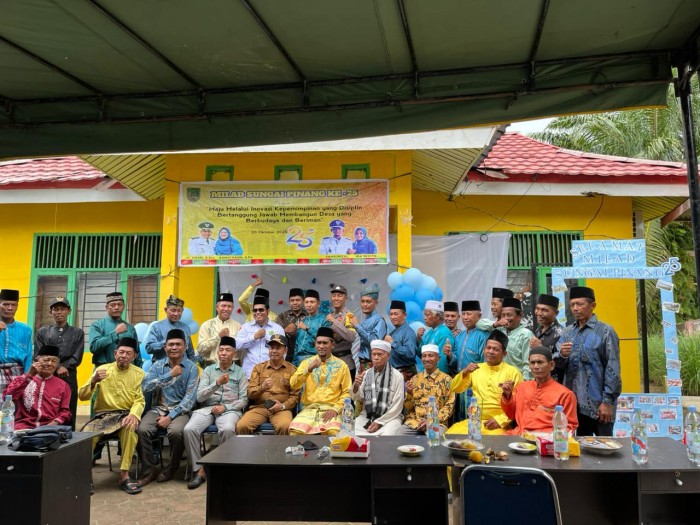 PUJUD (PRO) - Milad ke 25 tahun Pemerintah Kepenghuluan Sungai Pinang, Kecamatan Pujud, Kabupaten Rokan Hilir bersama warga menggelar syukuran dan doa bersama di Kantor Kepenghuluan Jalan Utama RT. 01 RW. 02 Dusun II Pujud Tua Hulu, Senin (20/10).